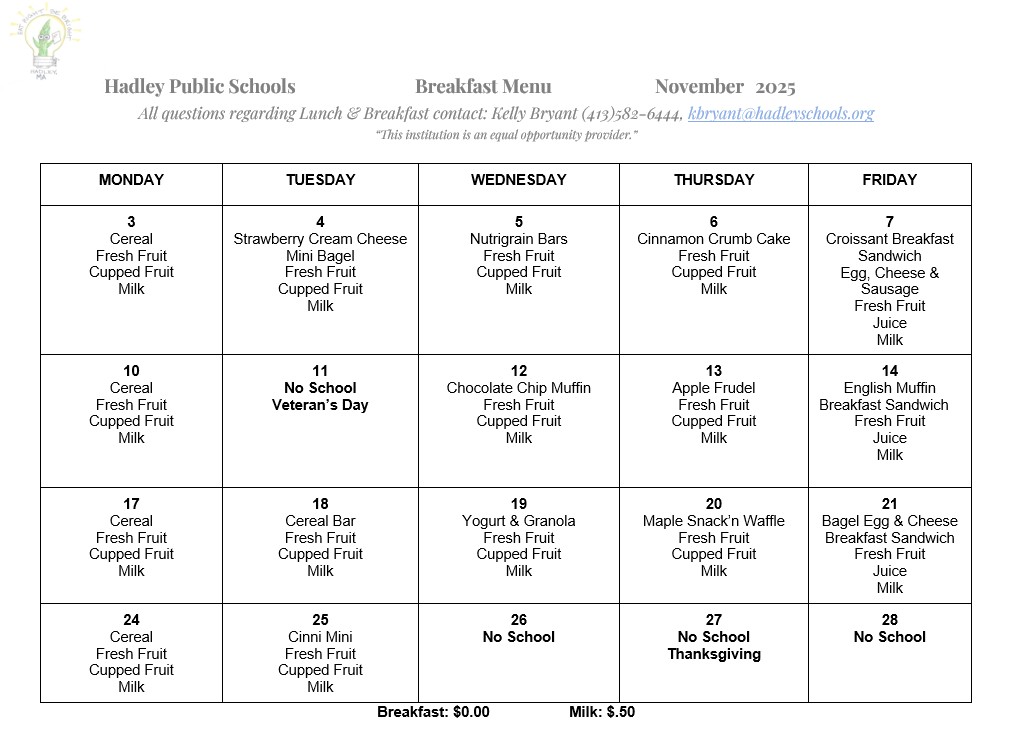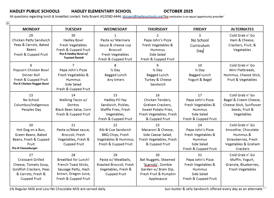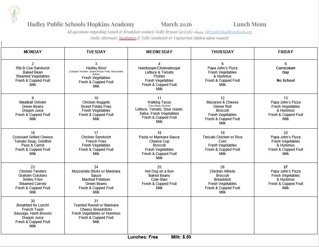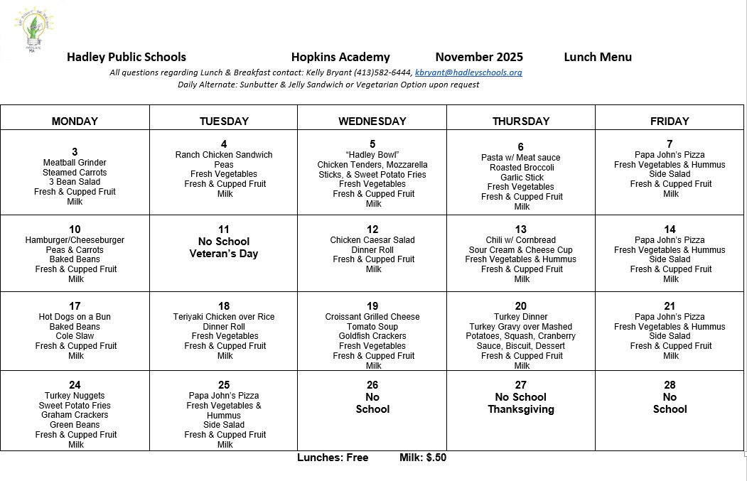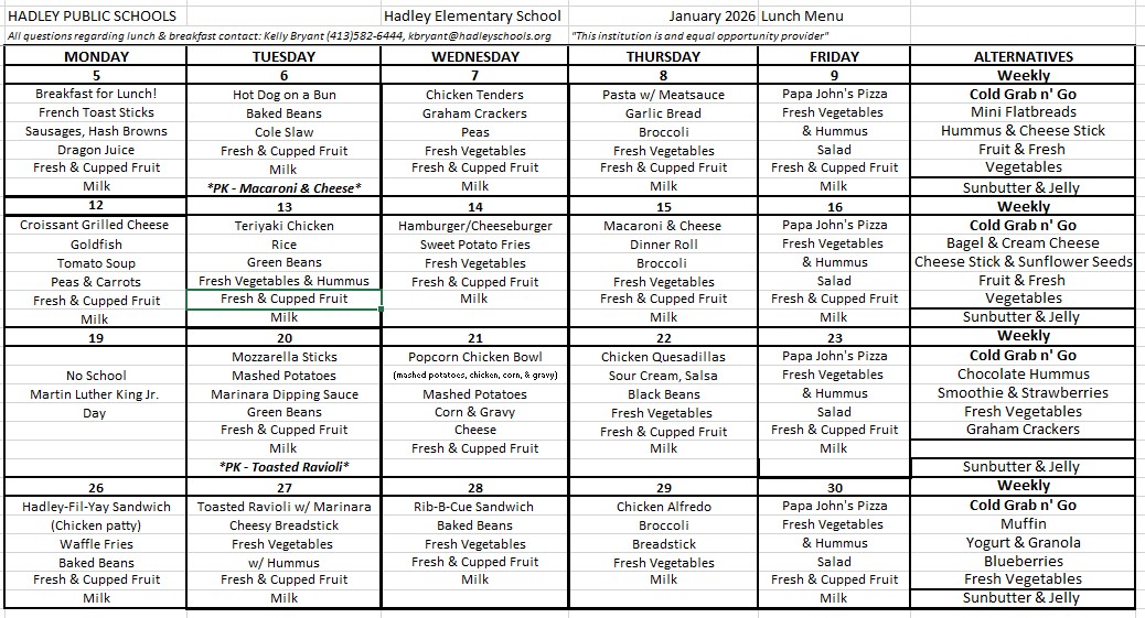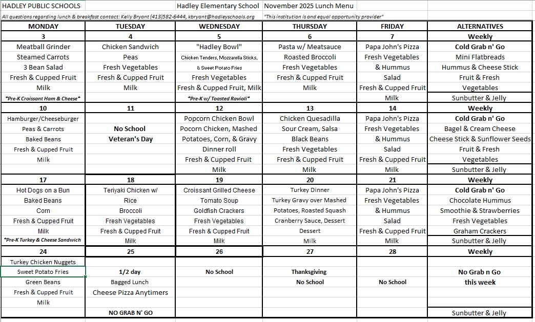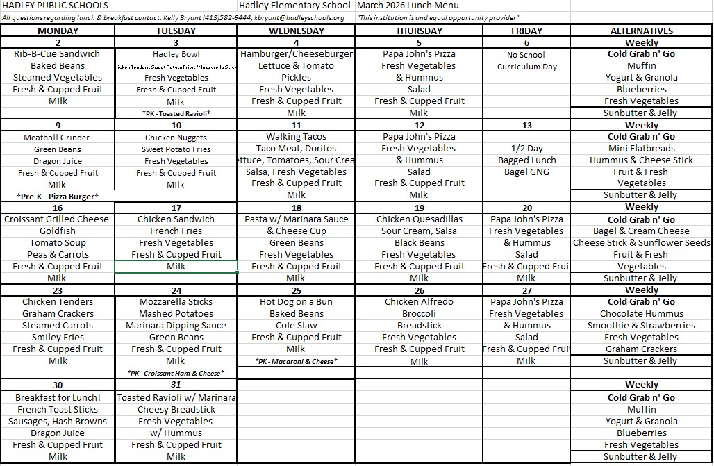 Hadley Elementary School (grades PK-6): (413) 584-5011